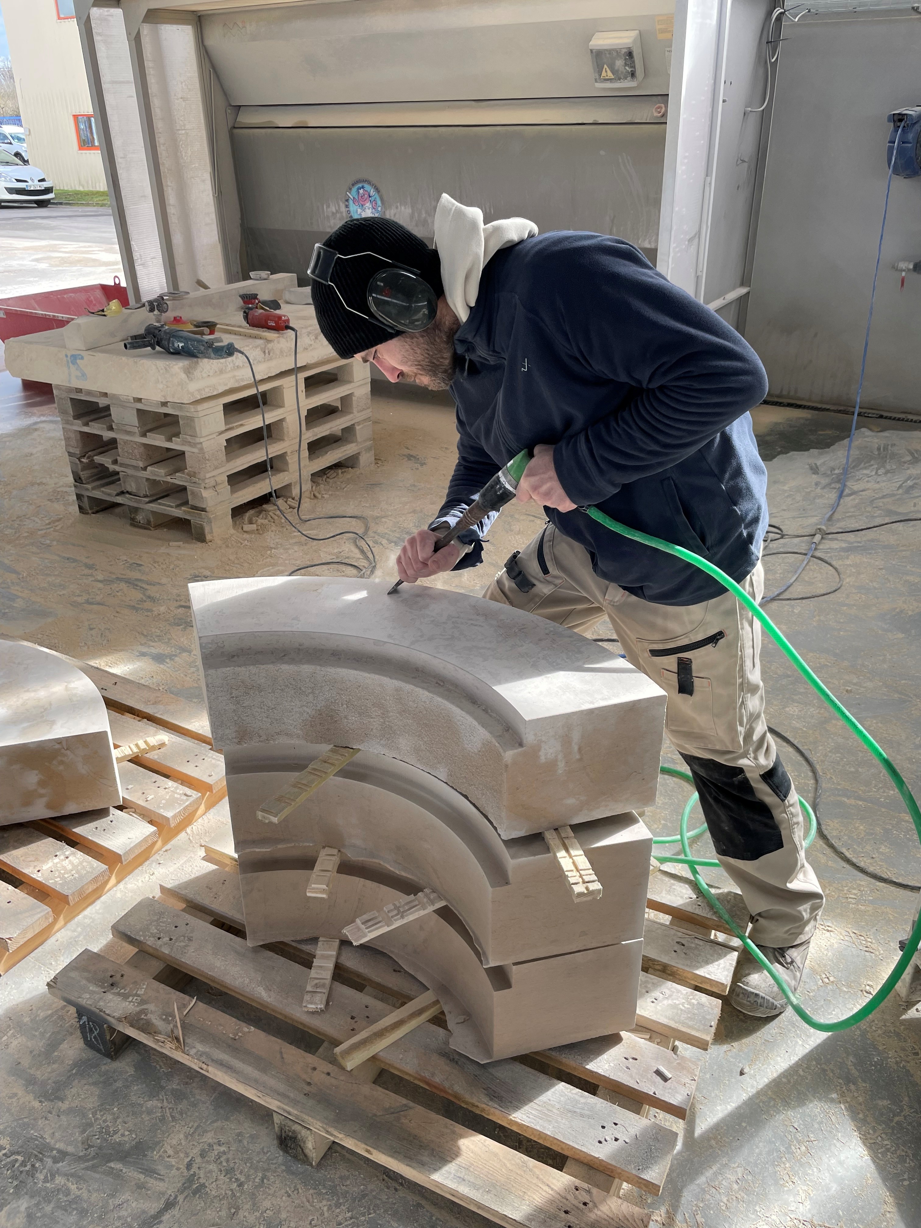 - La taille traditionnelle au ciseau et à la gradine pour redonner vie aux gestes ancestraux.